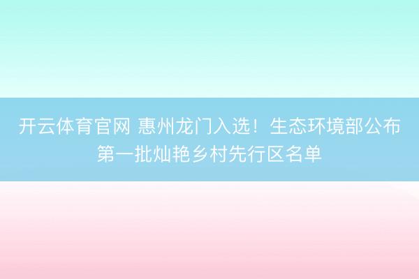 开云体育官网 惠州龙门入选!生态环境部公布第一批灿艳乡村先行区名单