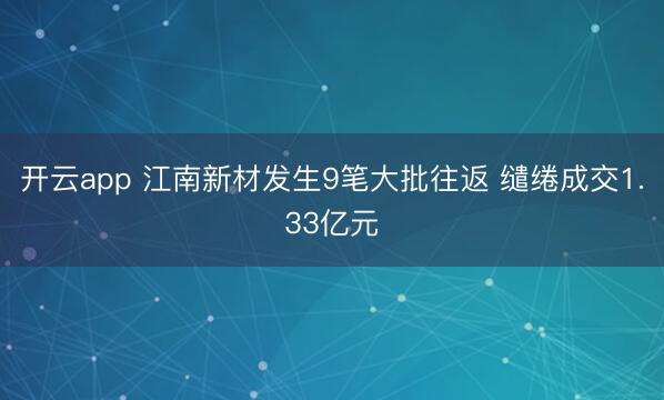 开云app 江南新材发生9笔大批往返 缱绻成交1.33亿元