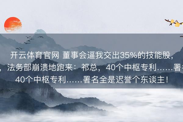 开云体育官网 董事会逼我交出35%的技能股,我凉爽署名。第二天,法务部崩溃地跑来:祁总,40个中枢专利……署名全是迟誉个东谈主!