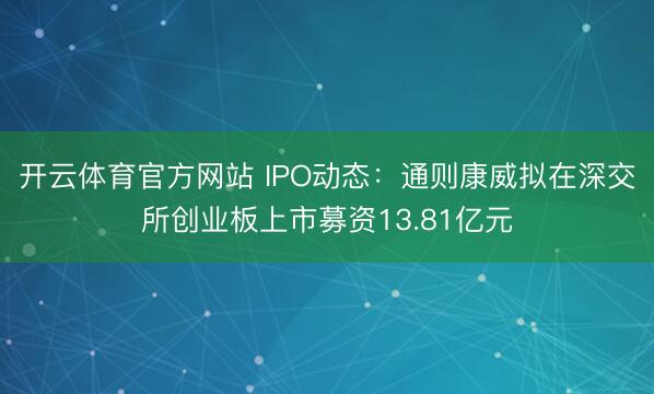 开云体育官方网站 IPO动态:通则康威拟在深交所创业板上市募资13.81亿元
