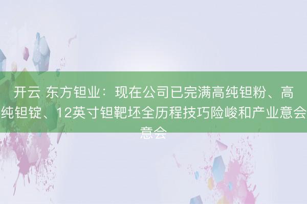 开云 东方钽业:现在公司已完满高纯钽粉、高纯钽锭、12英寸钽靶坯全历程技巧险峻和产业意会
