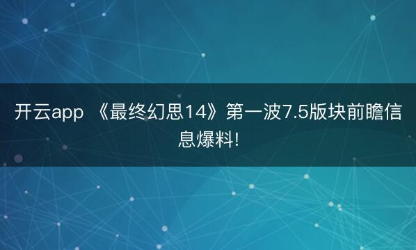 开云app 《最终幻思14》第一波7.5版块前瞻信息爆料!