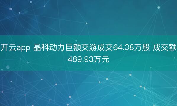 开云app 晶科动力巨额交游成交64.38万股 成交额489.93万元