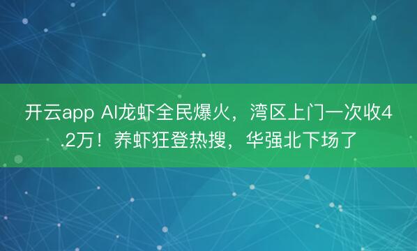 开云app AI龙虾全民爆火,湾区上门一次收4.2万!养虾狂登热搜,华强北下场了
