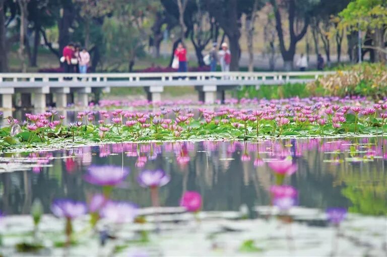 @小红书网友 摄 紫马岭公园内 睡莲盛放 引得游东谈主立足不雅赏 黄得灿艳