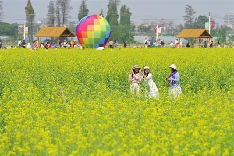 沙溪镇龙头环村 千亩稻田不雅光园区内 通达的油菜花诱惑了 市民和搭客赶赴游欣赏春 粉得暖热