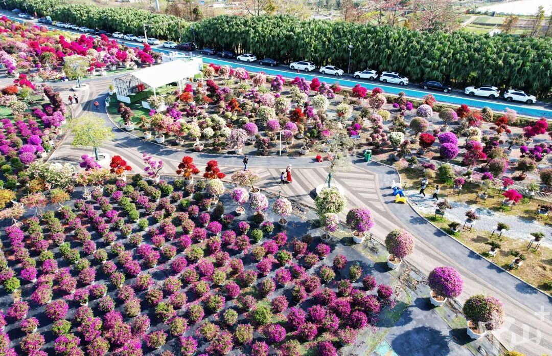 西江花洲南段花海营地 与北段2号驿站三角梅花海无缝衔尾 造成连贯生态景不雅带 既丰富游览阶梯 更让“十里江堤 十里花海”的 特有魔力充分开释