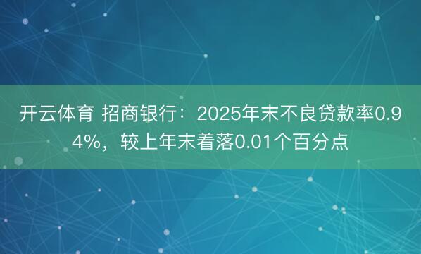 开云体育 招商银行:2025年末不良贷款率0.94%,较上年末着落0.01个百分点
