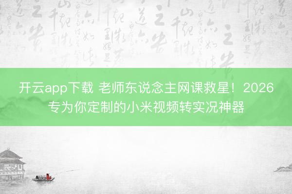 开云app下载 老师东说念主网课救星!2026专为你定制的小米视频转实况神器