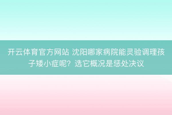 开云体育官方网站 沈阳哪家病院能灵验调理孩子矮小症呢?选它概况是惩处决议