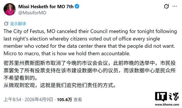 IT之家 4 月 14 日音讯,科技媒体 Tom's Hardware 今天(4 月 14 日)发布博文,报谈称因为 60 亿好意思元(IT之家注:现汇率约合 410.58 亿元东谈主民币)的 AI 基建数据中心技俩,好意思国密苏里州小镇 Festus 选民奉命市议会半数成员并拿告状讼,指控有预备经由枯竭透明度。 IT之家征引博文先容,好意思国密苏里州 Festus 小镇东谈主口不及 1.4 万,近日成为全好意思反对 AI 数据中心波浪的焦点。