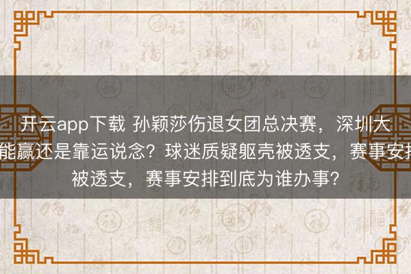 开云app下载 孙颖莎伤退女团总决赛,深圳大学硬扛压力,真能赢还是靠运说念?球迷质疑躯壳被透支,赛事安排到底为谁办事?