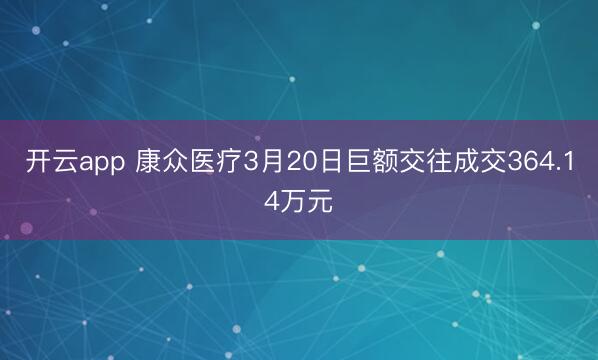 开云app 康众医疗3月20日巨额交往成交364.14万元
