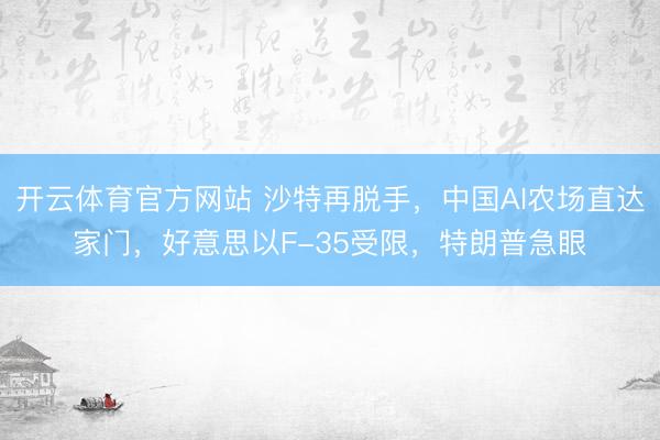 开云体育官方网站 沙特再脱手,中国AI农场直达家门,好意思以F-35受限,特朗普急眼