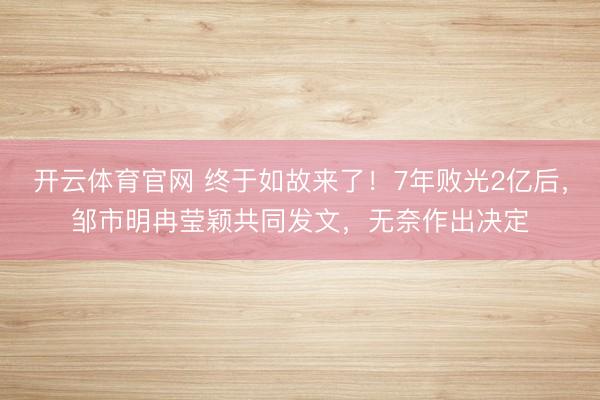 开云体育官网 终于如故来了!7年败光2亿后,邹市明冉莹颖共同发文,无奈作出决定