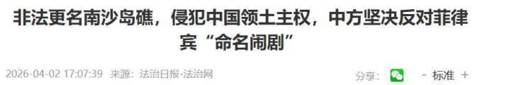 2026年3月26日,菲律宾总统小马科斯签署了一份文献,拦阻对南海131个中国岛礁进行任何形式的更名。这份文献看似约略,实则是菲律宾在好意思國的操控下,变相承认这些岛礁的时弊性,连更名皆要流程好意思国情愿。