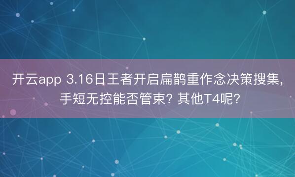开云app 3.16日王者开启扁鹊重作念决策搜集, 手短无控能否管束? 其他T4呢?
